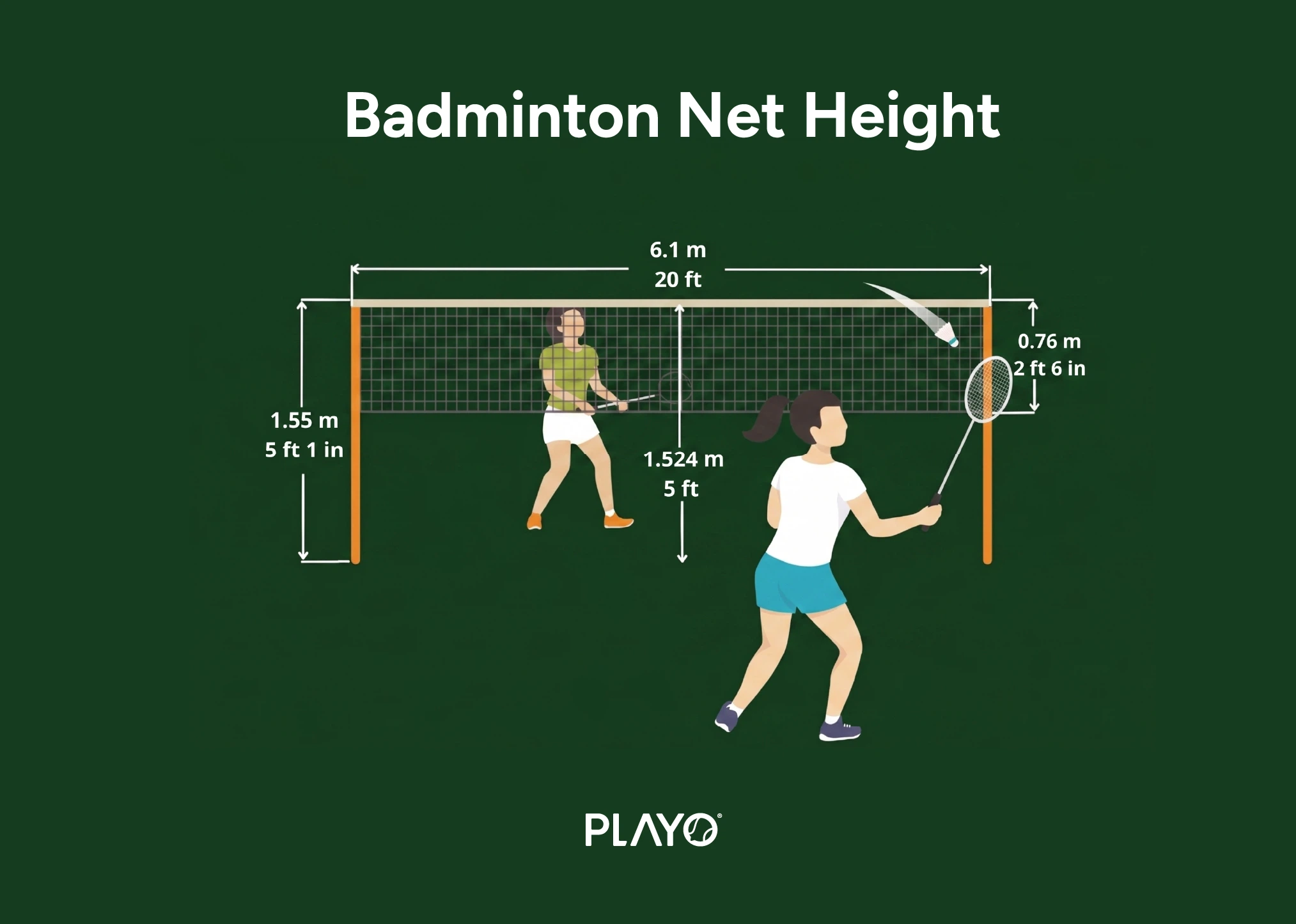 The badminton net height in feet is 5 ft at the centre and 5 ft 1 in at the posts. In badminton net height in meters, it is 1.524 m and 1.55 m respectively, while the badminton net height in cm is 152.4 cm at the centre and 155 cm at the posts.