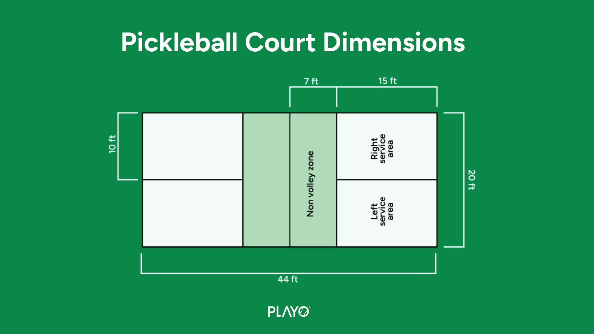 - Total Playing Area: 20 ft x 44 ft (measured to the outside edges of the lines)